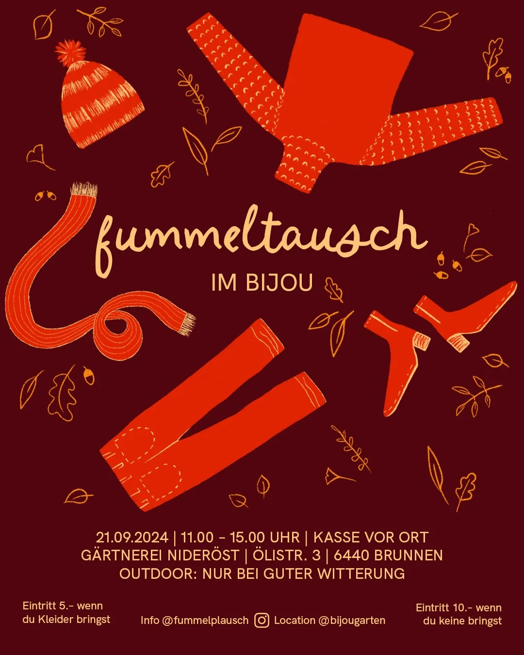 Regelmässig veranstaltet Fummeltausch – der Verein Non-Profit-Kleidertausch-Events im Kanton Schwyz. Ziel ist zirkulärer Kleiderkonsum, der sowohl die Umwelt als auch das Portemonnaie schont. Seit einigen Jahren bin ich Vereinsmitglied und leiste meinen Beitrag in der Gestaltung jeglicher Werbemassnahmen sowie der Bewirtschaftung der Social Media Kanäle.
